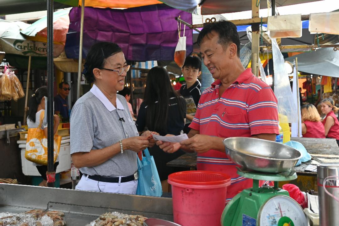 菜市场里,秀勤隔壁的档口是由堂弟王志吉经营,每天忙着做生意。从小认识堂姐一家人很勤恳,他坚持每个月捐款,只因自己没有时间,唯有把钱交给慈济去救济有需要的人,他说:“我们尽能力,可以做的就做,你们可以去外面救人,我们也可以造一点福报……”他发心从另外一位志工处领养了一个爱心竹筒,成为“爱心店”,鼓励顾客把零钱投入竹筒,汇聚更多人的力量,一起造福,回馈社会。