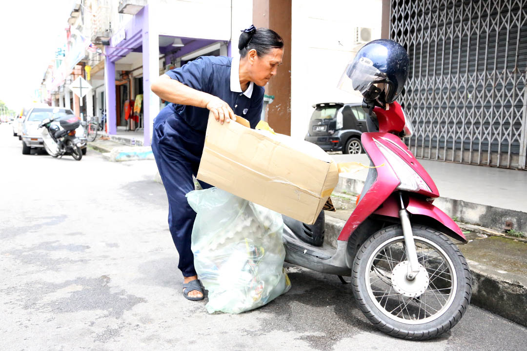 此外,吴雅莲也很佩服她的坚毅,年纪大了仍骑着摩托车到处收环保物,卖力做环保。直到某次因交通意外住院,劝说后,她才停止骑摩托车收环保物的行动。她说:“某天是来环保站做环保之日,她没请假、人也联络不上,我特地跑去家里找,才知道她出事了。她很独立,但是孩子不在身边,劝她要照顾好自己。”