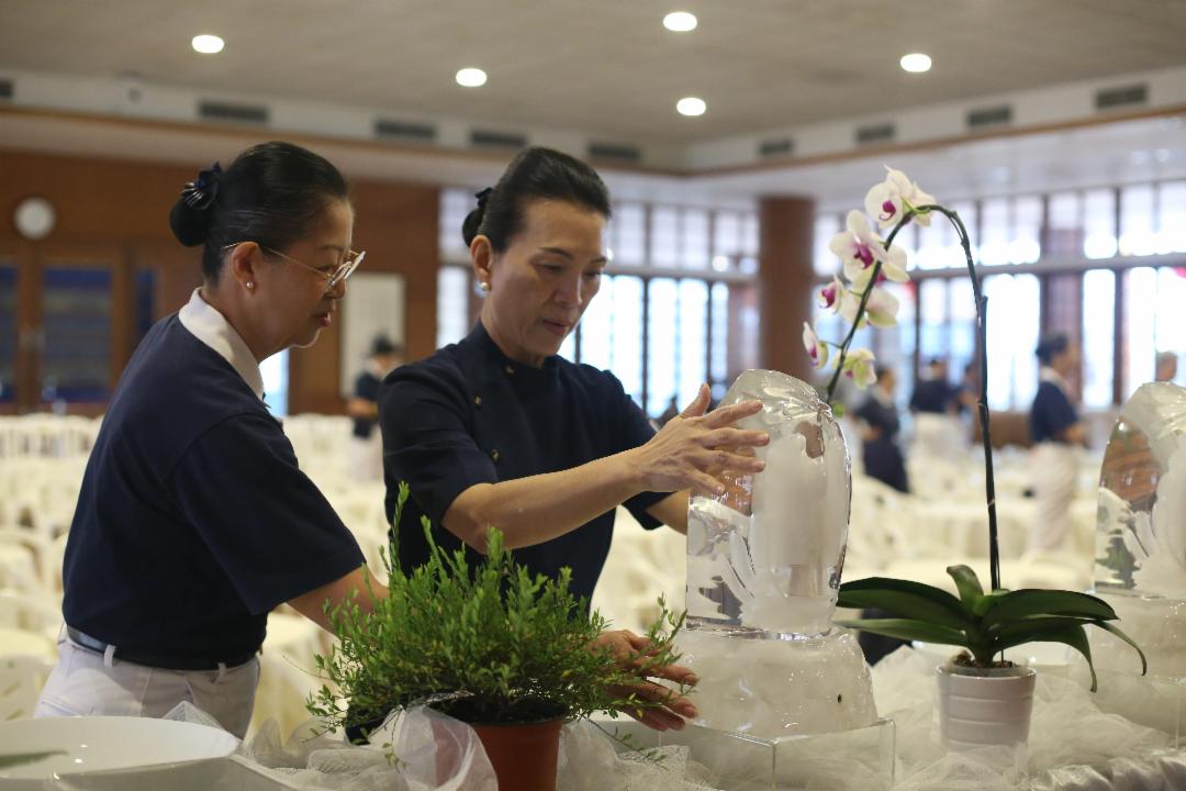 曾在体育馆布置时,连续四十八小时没阖眼,双脚走到发麻,只为确认每一处细节。 “一定要完成。”她语气坚定。最难忘的是有一年选用“一桶金”盆栽,为了保养土壤品质而需要解决换土工序,因人手不足,最后只剩七位师姊留下来做。大家搬着花盆,边做边笑。她说,那一天大家没有怨言,只有欢喜。