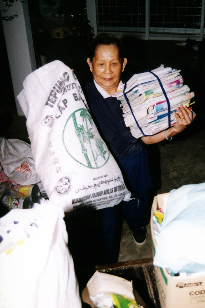 邱金娘小小身影宛如巨人,回收助人不遗余力。【照片:慈济马六甲分会文史组提供】