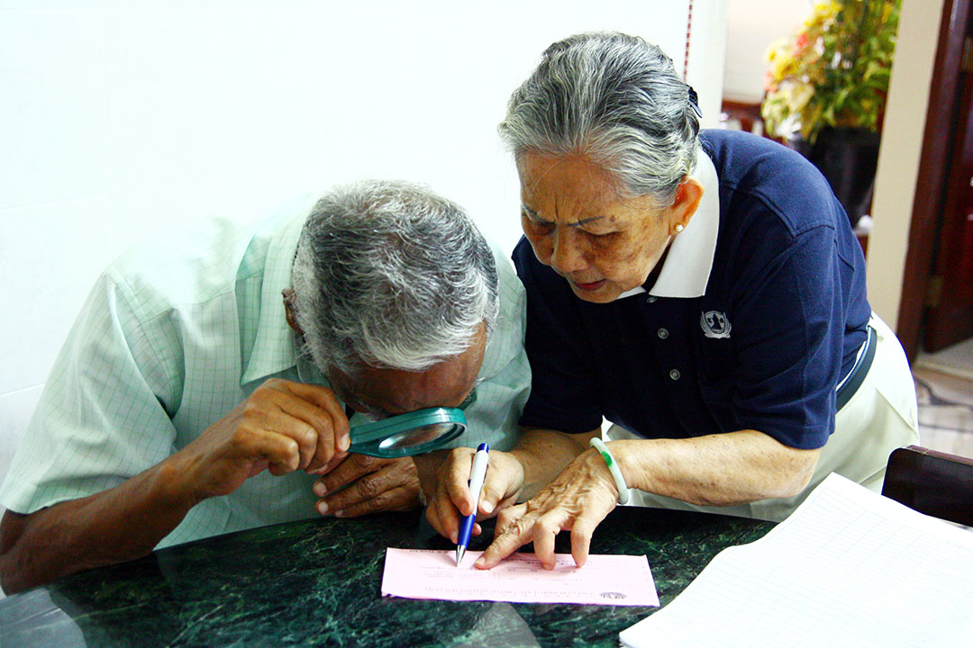 年岁渐长,脚步变慢、膝盖疼痛,她就戴上护膝继续募爱心。她说:“我要帮上人招募多多人的爱心,善不能断。小小的善款,也可以救很多人,不分肤色。”