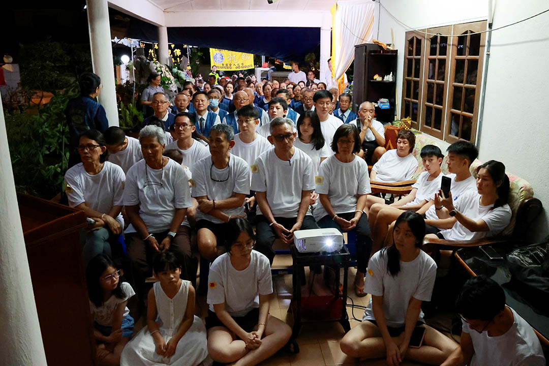 追思会上,媳妇帕汝阿荻(坐者左二)和长子林猷达(坐者左四)对老人家的思念、爱与感恩,都将化作祝福,让爱延续。【摄影:陈联喜】