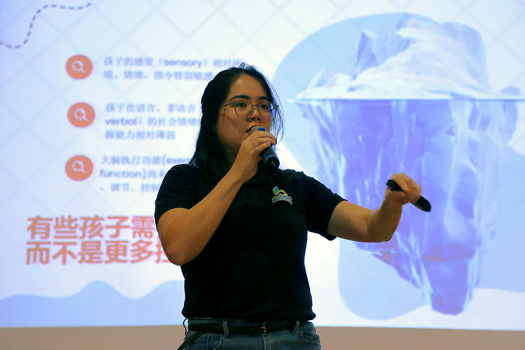 在机构里经常面对许多特殊小孩,她指出,特殊需求的孩子对环境较为敏感,在感官与讯息整合上容易产生困难,也因此更需要被耐心理解。因此透过一场场讲座分享,希望协助家长建立正确观念,与专业携手,从孩子的行为中读懂情绪的讯号。