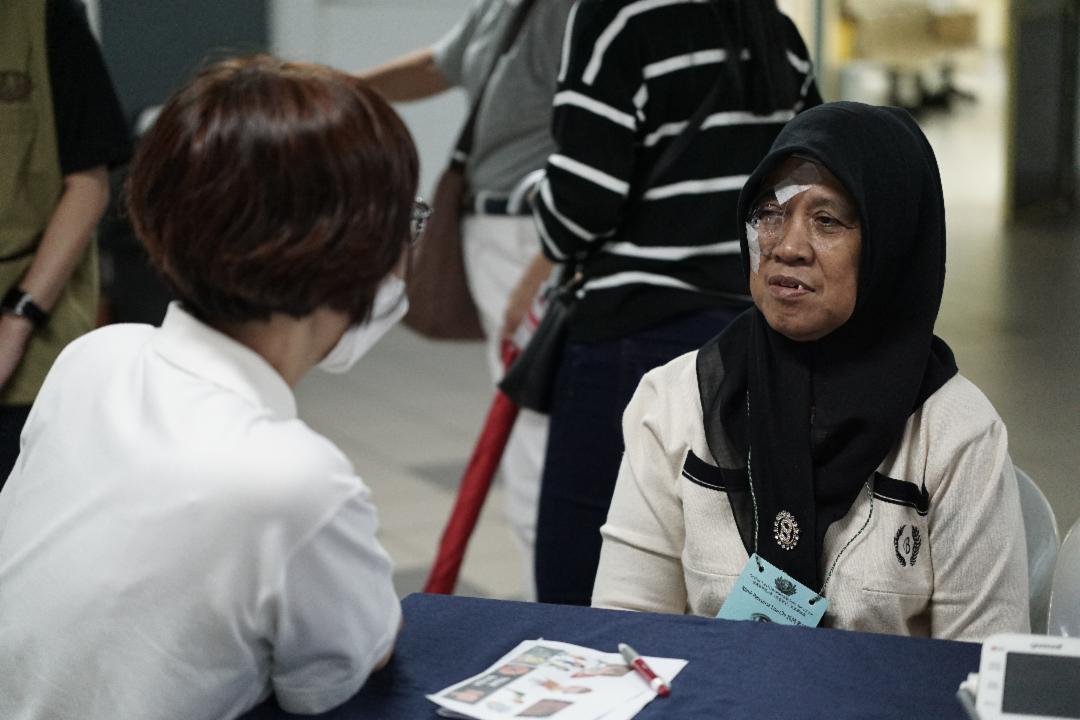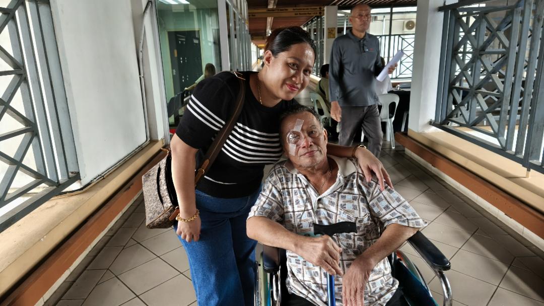 七十七岁的尤金阿秋近两年视力退化,行动困难。他与家人从林梦途经文莱前往美里接受手术,路途遥远却难掩喜悦。抵达后,医疗团队与志工细心安排、耐心说明,让他逐渐安心:“医生很好,大家服务也很好,让人很安心。”对阿秋而言,手术不只是重获视力,更是重新看见生活的开始。