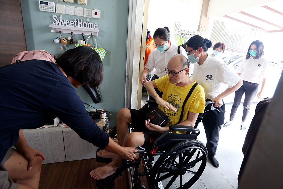 如今,他已能自行从床上移到轮椅,扶着扶手走进厕所、自己洗澡,也能走到客厅活动。妹妹王绥圆则在一旁细心守护,确保他的安全。她说:“物理治疗师到家里指导,也提醒我们需要注意的细节,让家属更有信心。我们就依照医疗团队的交代,留意环境、做些调整,陪着他一步一步慢慢来。”