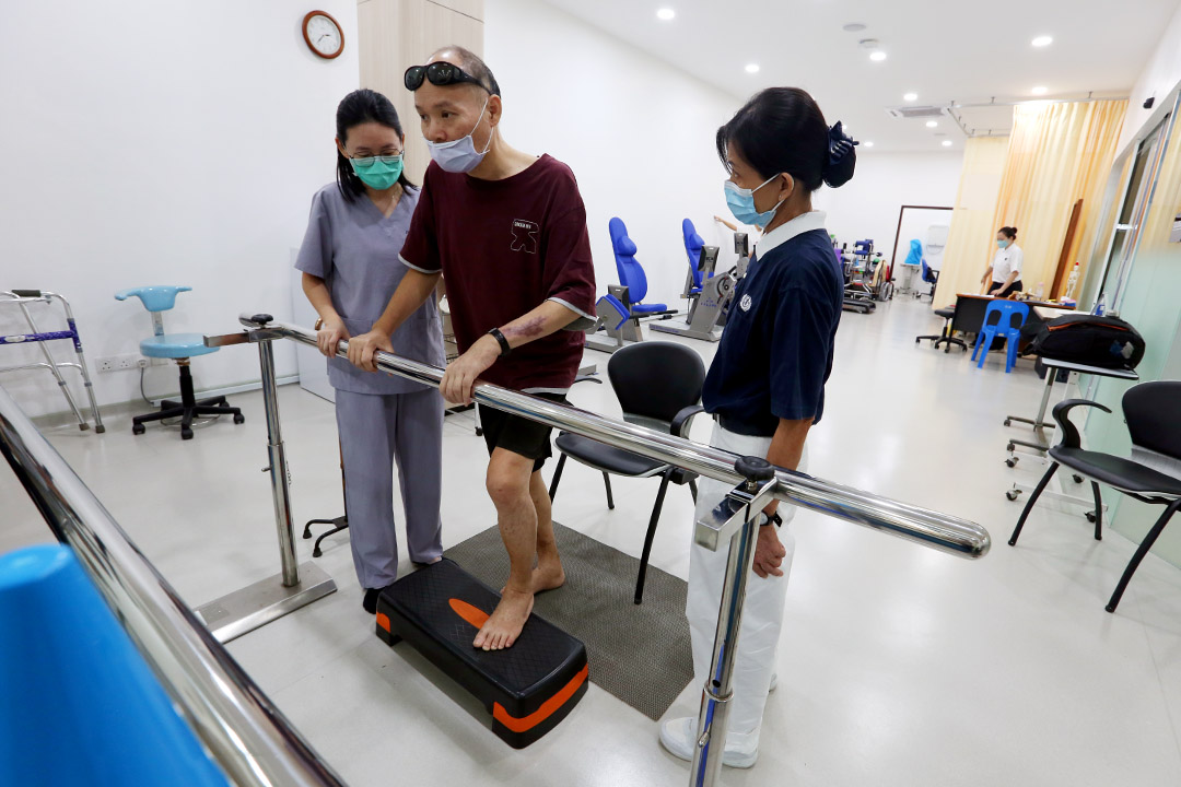 在专业且耐心的指导下,他开始每天在疗养院自行练习。两个月后,他从完全无法站立,进步到能扶着站起来、慢慢走几步路;手部功能也逐渐能微微活动、拿起物品。随着进展,医疗团队进一步教导生活自理能力,如穿衣、穿裤、穿袜与穿鞋等,让他一步步找回生活尊严。