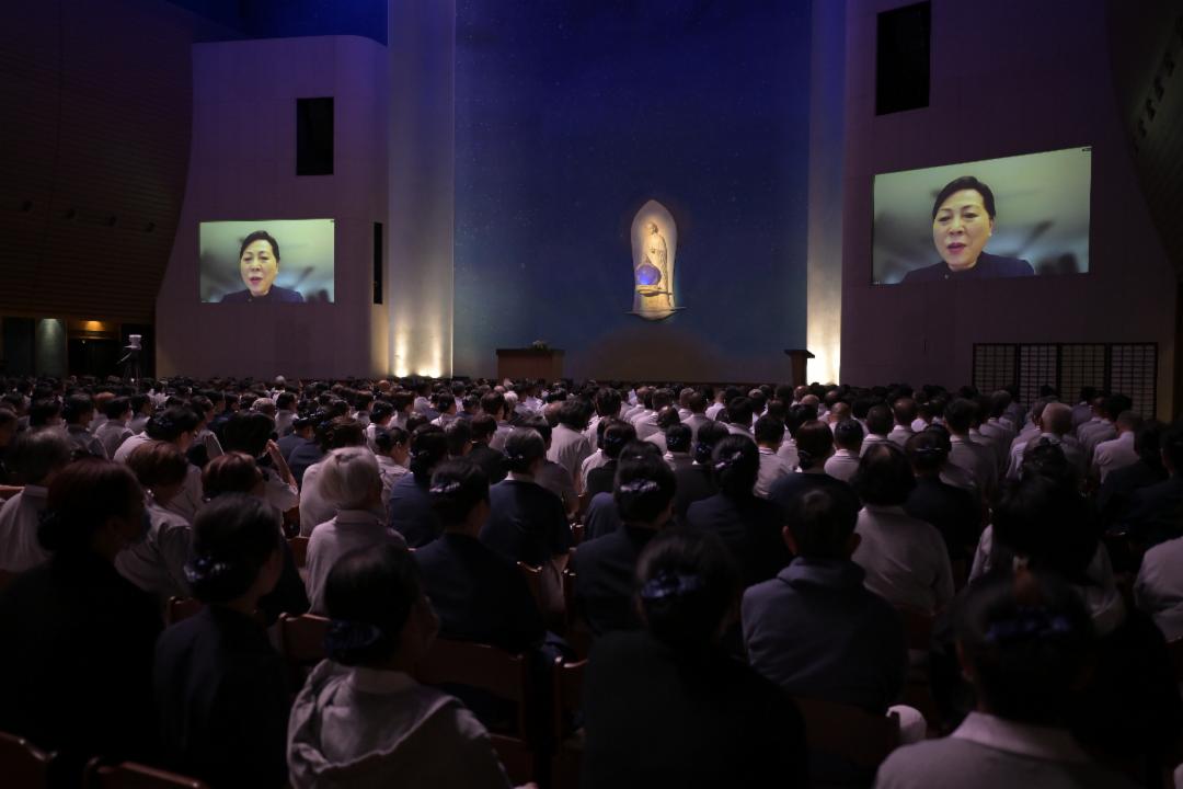 活动现场特别跨海连线台湾,邀请雪隆分会执行长简慈露师姊送上温暖的勉励。她期许大家珍惜这分殊胜福缘,坚定发心立愿,让这份道心更加坚实。【摄影:李国强】