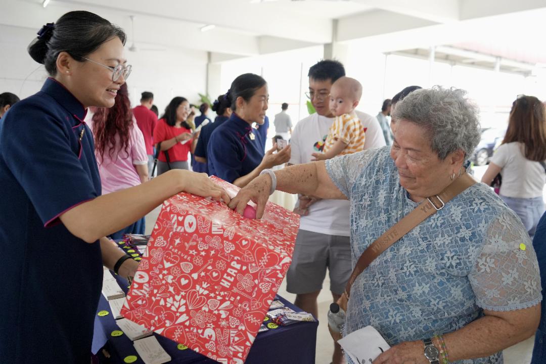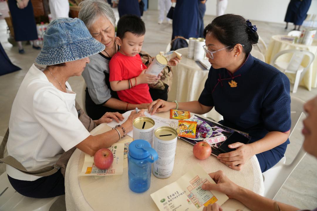 而“幸运智慧球”则让会众抽取号码,拿到一张与自身情境相呼应的静思语卡。若有民众想进一步了解卡片的内涵,志工们便会奉上热茶、饼干与小吊饰,让这场善的交流更显温暖与贴心。