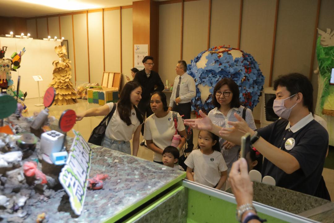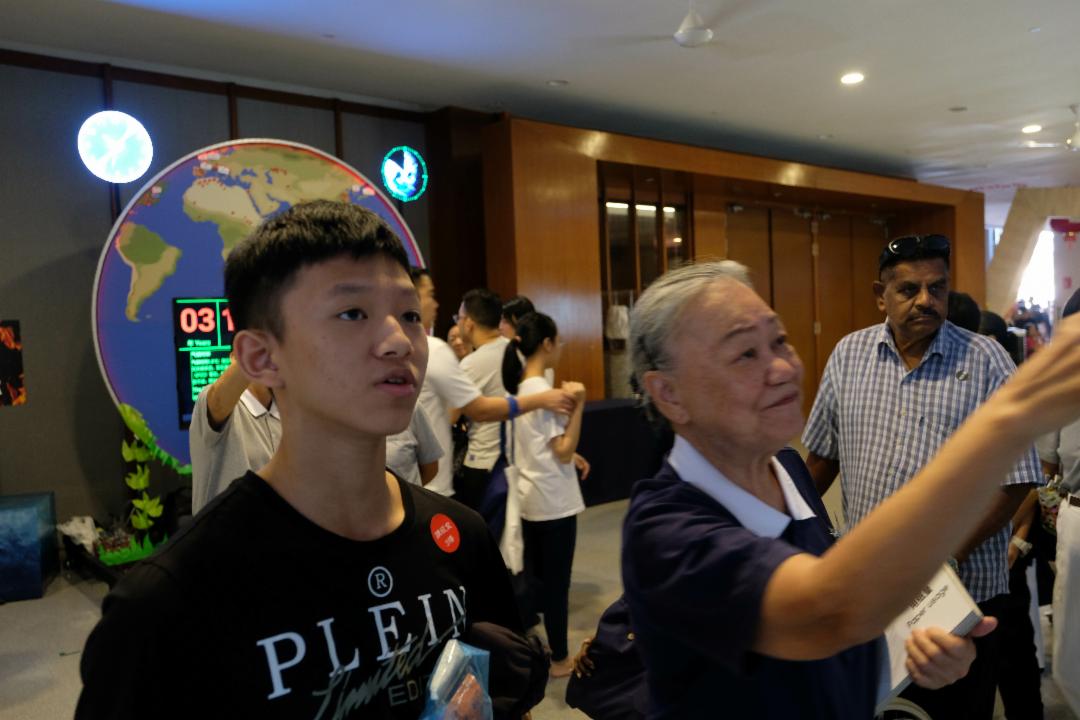 陈俊杰(左一)从绿色行动体验展中获悉人类过度的消费导致地球承受重大压力,决意加入环保行列,共同守护地球。【摄影:陈德铭】