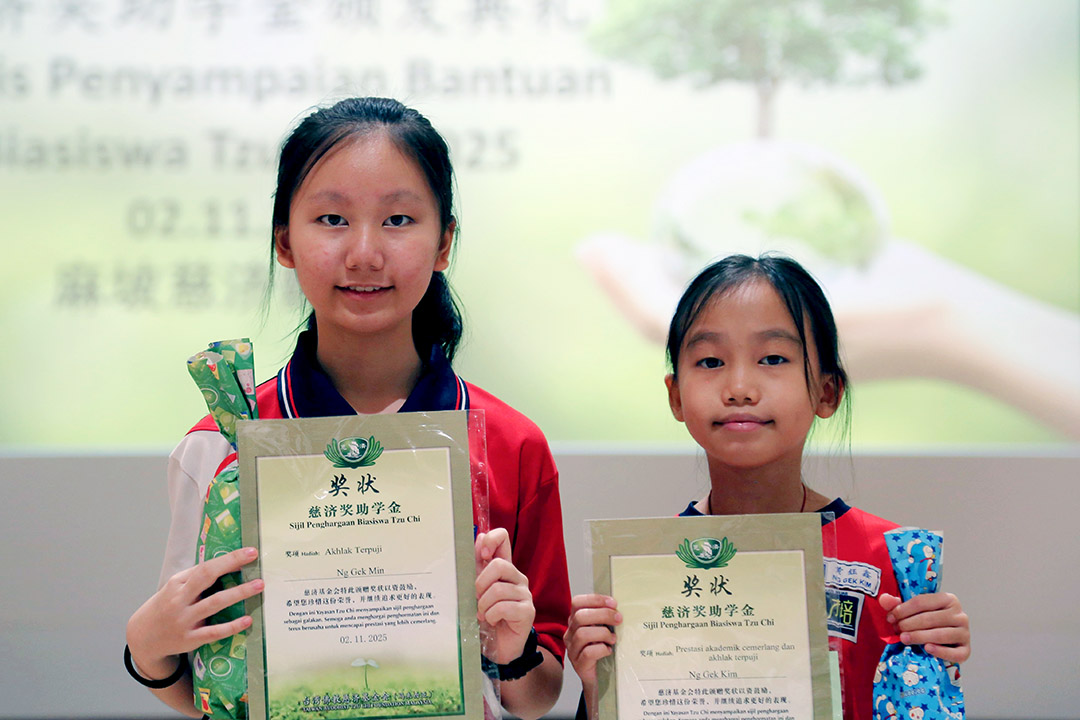慈济麻坡支会于2025年11月2日及16日,分别在麻坡静思堂、昔加末共修处,以及东甲利丰港培华小学三地举办六场奖助学金颁发典礼。奖项分为“品德奖”及“品学兼优奖”,今年共有四百八十六位学生受惠,让更多家庭与孩子在学习路上获得力量与支持。