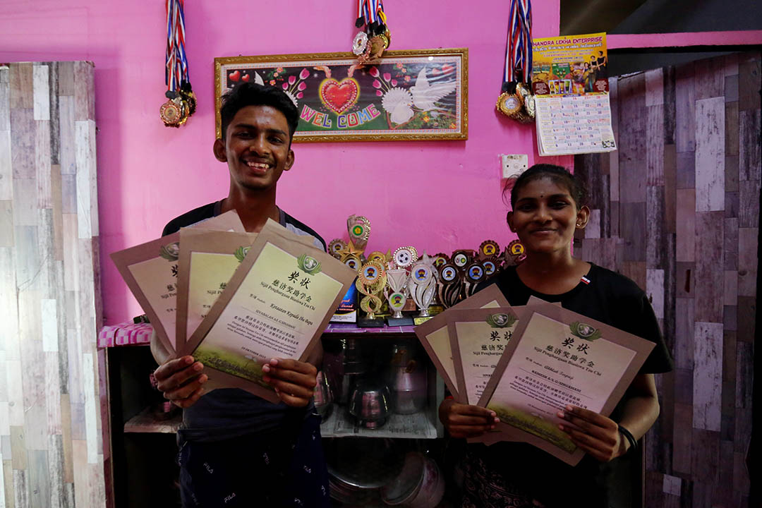 印裔妇女玛达薇(Mathavee A/P T. Raman)是野新县中央医院的清洁女工,丈夫往生后咬紧牙根独自抚养五个子女成长。每年开学,孩子的学杂费总让她愁眉不展,常需向左邻右舍借钱,才能勉强应付。社区志工看在眼里,自2017年起,年年协助其中二、三位孩子申请慈济奖助学金,并提供电脑作为孩子学习之用,大大减轻她的经济压力。