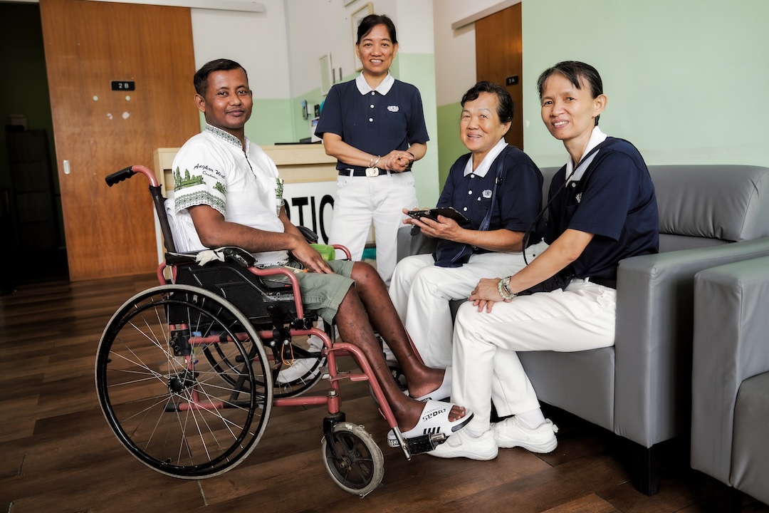 这里空间不大,却承载了一个人六年的岁月。阿曼沙(Aman Shah Bin Abdul Malik)坐在轮椅上,一看见志工走进来,脸上立刻浮现久违的笑容,那是期待,也是喜悦。
