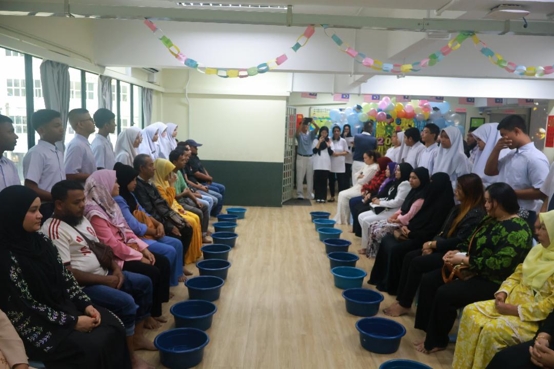 毕业时刻,校方特别安排孩子为父母浴足,让他们懂得知恩、报恩,并将它付诸在行动上。【摄影:侯佳惠】