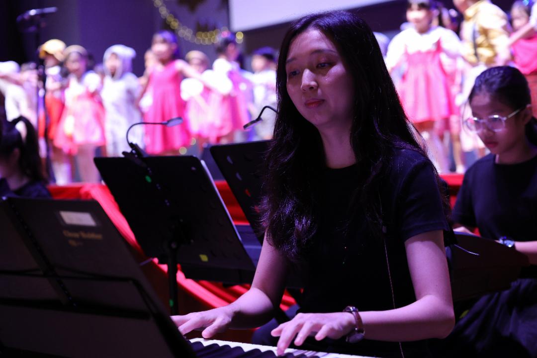 音乐老师杨妡妤加入慈济国际学校的那一年,正好是学校首次举办音乐会;而今年,已经是她在此任教的第三年。在这次的演出中,杨老师主要负责二、三年级的节目及相关幕后协调工作。她分享:“学校举办年终音乐会的主要目的,包括让学生探索音乐表演的可能性,建立自信心以及培养团队合作精神。在训练过程中,最大的挑战是在课堂管理,严格标准和学生能力之间找到平衡点, 同时需要持续激发学生的学习动力。 ”她认为音乐教育最重要的不是技术层面的完美,而是培养学生欣赏美的细腻心灵,以及给与他们一个可以在困难时期抒发情绪的途径。