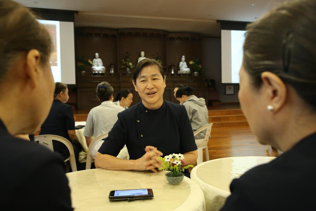 从李玲惠校长的分享中,廖月霞体会最深的一句话是“做别人的事,练自己的功”。她说:“每次进校前,我们需要花大量时间备课,包括寻找上人开示影片、设计流程等。有时为了找一段八分钟的上人开示内容,我必须看完四十八分钟的影片,将内容理解、内化后才能剪辑出来。这些看似为别人付出的过程,其实学习最多的是自己,是在练自己的功。 ”