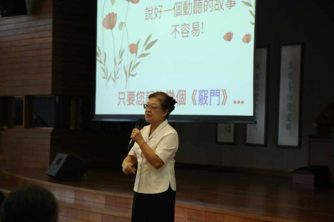 她先安排学员分组练习说故事,之后再亲自上阵示范,透过声调的高低起伏、语速的快慢掌握,以及表情与手势的配合,把说故事的技巧发挥得淋漓尽致,让学员们深受启发,获益匪浅。