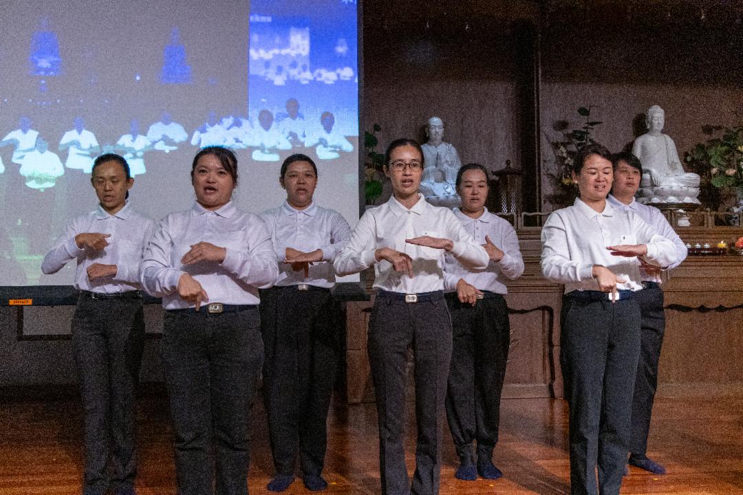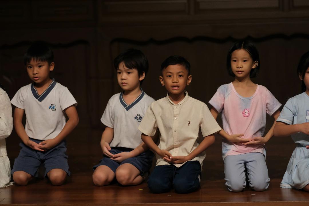 当孩子们上台演绎<因缘>,并用接地气如Al等用词,讲述佛陀在路边见到白骨、与阿难的对话,带出与父母累世的缘。同时,孩子们也演出母亲懷胎十月的种种辛苦,令在场的家长深受触动。
