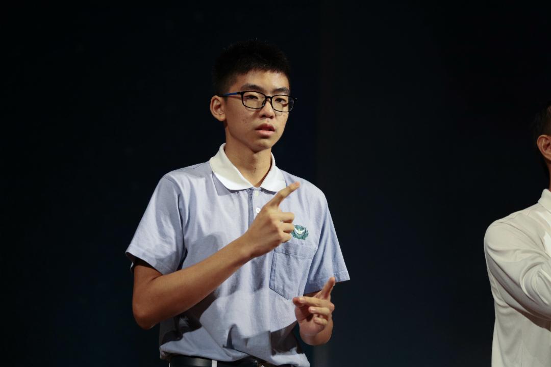 许毅哲在舞台上充满自信、全情投入演绎的瞬间,手语动作意味着他对孝道的坚定:“行孝不能等!”【摄影:郑智安】
