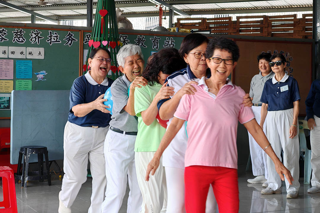 今年茶会最受期待的一环,是合唱班与志工一起带动全场唱跳。〈一起做环保〉和〈一个干净的地球〉旋律响起,大家手舞足蹈、笑声不断,也在歌声和手语中感受“保护地球、人人有责”的理念。随后,全体志工与合唱班又一起进行了大合唱〈小城故事〉、〈人间有爱〉和〈甜蜜蜜〉,歌声响亮而温暖,大家手牵手,笑声与旋律交织,把善念与关怀汇聚在会场每一个角落。