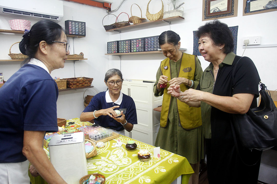 曾从事裁缝业车工的杨龙妹,在旁聆听志工讲解后深感赞叹。她认为,一缘坊的设立理念很好,不仅提供有心人发展手工艺的平台,也让原本可能被丢弃的布料得以再利用,减少浪费。