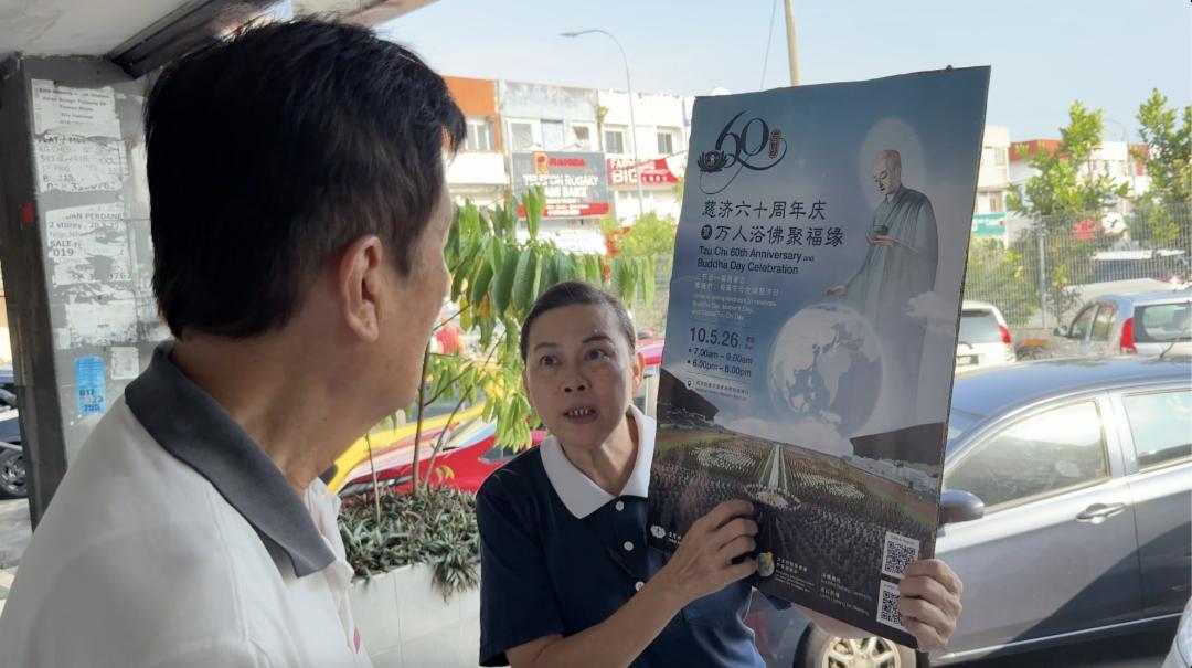 2026年慈济迈入一甲子。一群群志工走进菜市场、餐馆、花园、组屋与车站等地,宣导将于5月10日于在武吉加里尔国家曲棍球体育馆举办的“三节合一” (注)活动,期待凝聚万万人来浴佛的善念,共同为世界祈福。