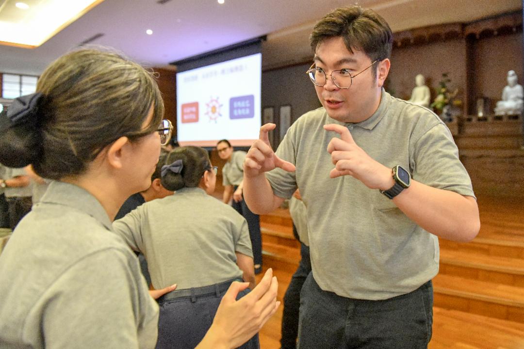 而在“转法轮机器人”课程里,学员们化身为灾区勘灾员、后勤与采购人员,在模拟的任务中,体验高压下的沟通与协作。这场练习不只是技巧的比拼,更是对“四摄法” ——布施(修己)、爱语(安人)、利行(成事)、同事(永续)的实作考验。高老师指出:“跨部门的合作,需要放下本位主义,强调共识而非胜负。当人人能从对方角度看问题,组织就会有生命力。”