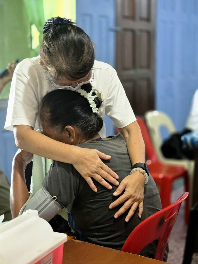 “今年三月份,我的丈夫往生了,你们知道的,一家之主就是脊梁骨,他走了这个家就倒了。”兰迪悲痛地述说这段令人难过的经历,未愈的内心让她忍不住泣不成声,医护人员赶紧给予抚慰的拥抱,这让她感受到前所未有的温暖与尊重。