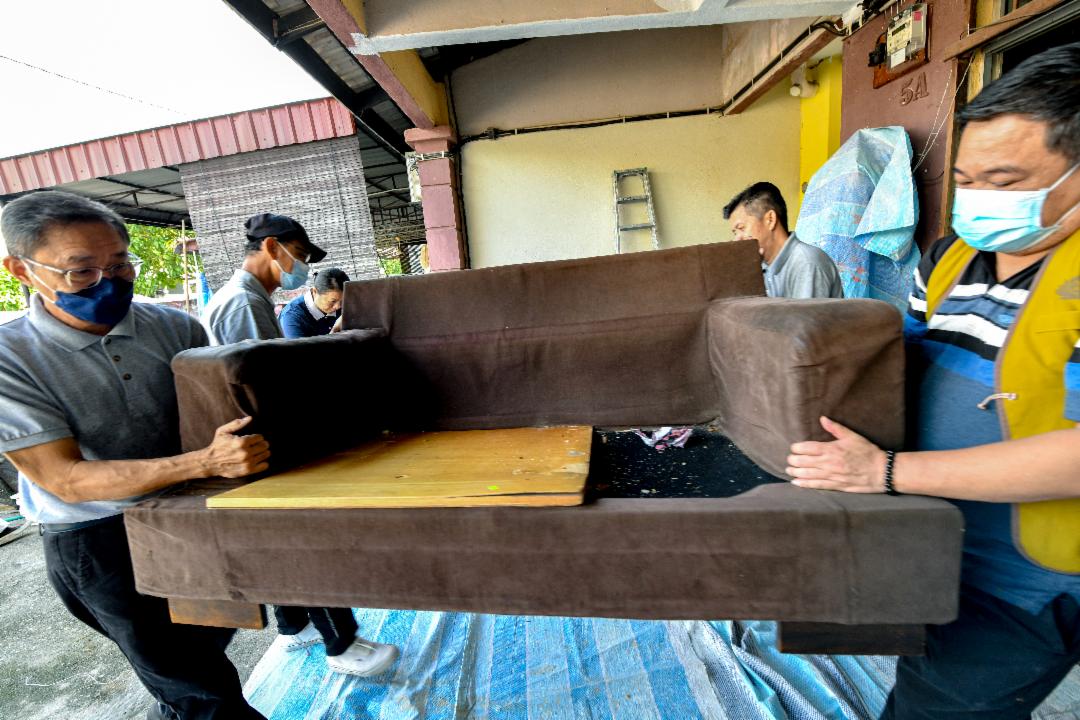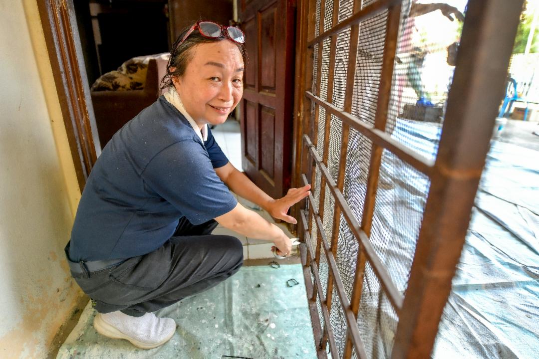 2025年10月18日,志工们一早便抵达万绕(Rawang)帕提班的家。从前院开始动手——清扫墙上厚厚的灰尘与蜘蛛网,拆除黏在铁门上的破旧防网。随后,大家分工合作,先为前院与小铁门重新上漆,接着进屋搬移家具、进行粉刷、更换灯管、安装厨房橱柜,最后在大门加装铁网,以防老鼠再度入侵啃食帕提班溃烂的脚。整个过程井然有序,洋溢着互助的温度。