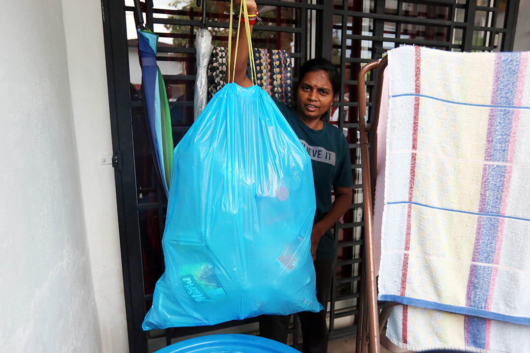 无法进行财布施的卡娜吉,依然善用自己的能力,从家里回收瓶瓶罐罐,捐献及回馈社会。【摄影:罗秀莲】