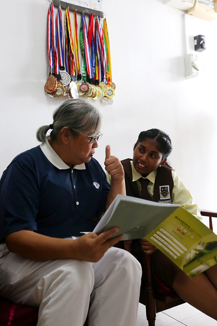米杜娜请姐姐玛菈丝里(Malasri A/P Visvalingam)帮忙安装电脑基本软件,边说:“谢谢志工帮忙请购全新电脑。如果没有它,我可能会先向朋友借用电脑做作业,再想办法。”这是少女面对未来的勇气。