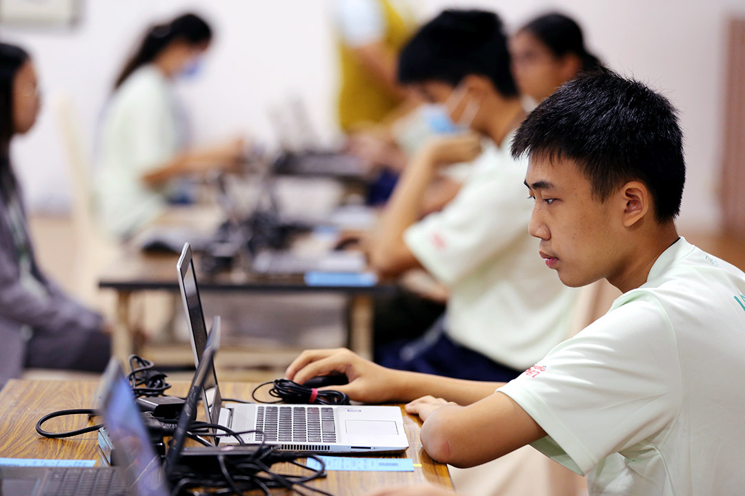 张宇婕进一步表示,学校有十人参赛,今天全数入围国际赛。从七月开始,以两个人一组方式结伴组队线上练习。“我们会约好时间上线练二十分钟,彼此比分数,看谁更快答对。那种有伴一起竞争、又一起想办法突破,像是竞争又合作,感觉很开心,有动力。可能是我们成功的秘诀,一起为学校争光!”