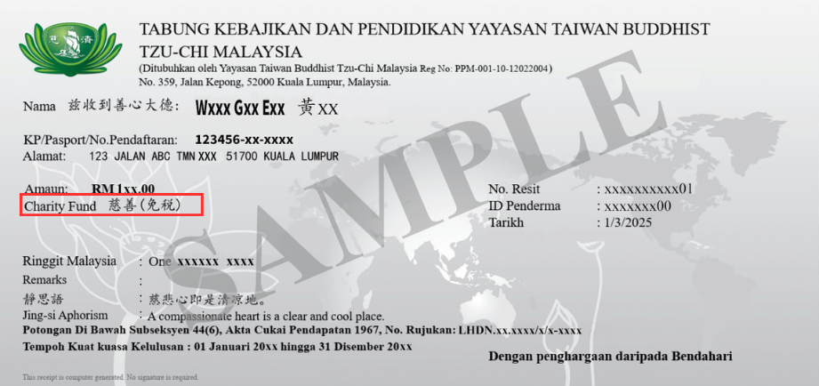 TABUNG KEBAJIKAN DAN PENDIDIKAN YAYASAN TAIWAN BUDDHIST TZU-CHI MALAYSIA