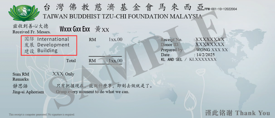 Donation Fund type:Development Fund/International Fund/Building Fund