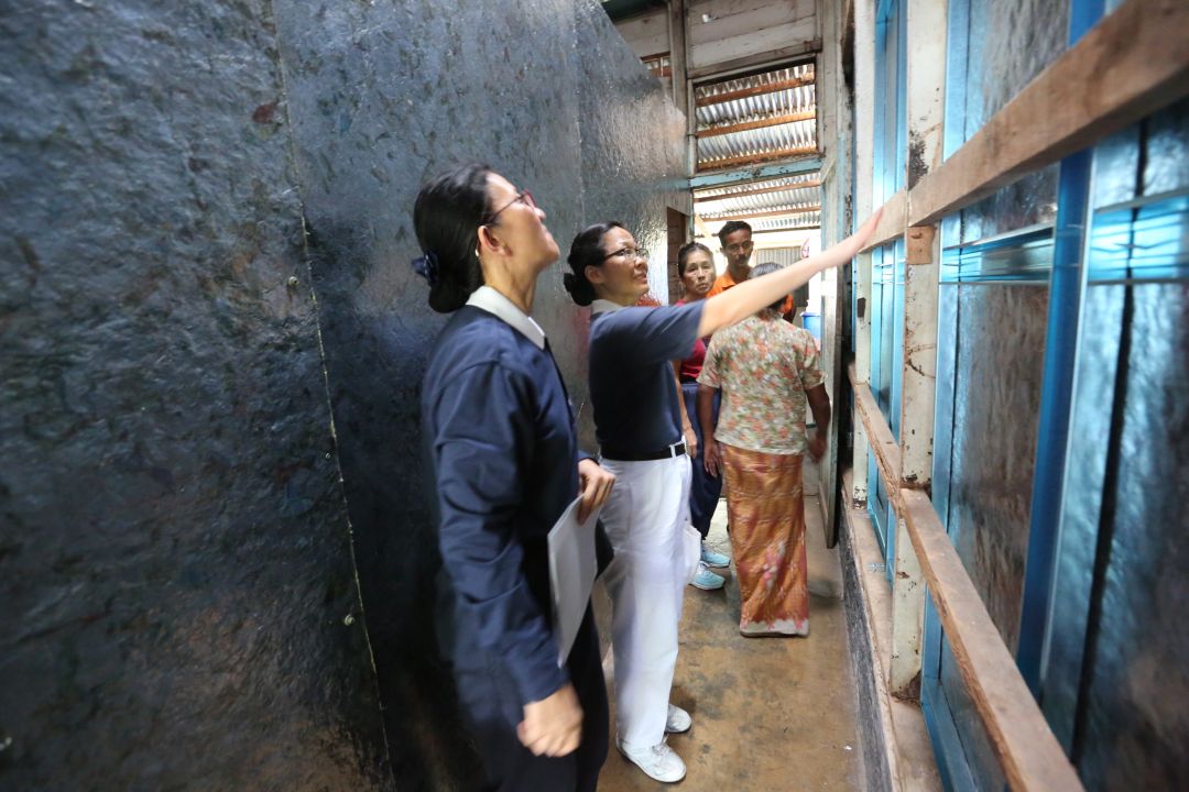 Volunteers inspecting renovation work done. [Photograph by Low Siew Lian]