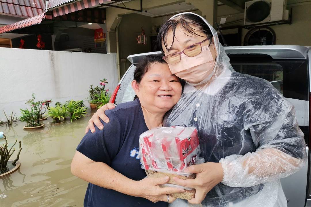Josephine Cristina, a primary school teacher at SJK(T) Sungai Renggam, and her 96-year-old paralysed mother were ferried to the relief centre via a 4WD vehicle. Josephine shared that as the water level in her neighbourhood continued to rise, residents were screaming desperately for help.