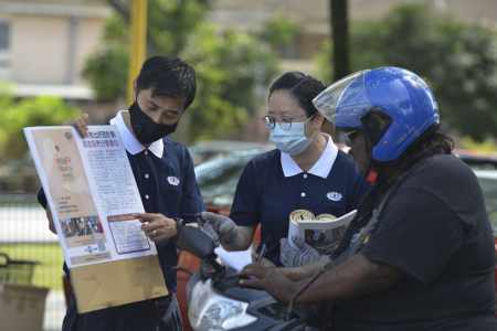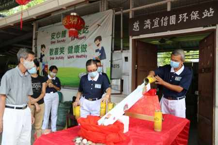 2020年7⽉10⽇,志⼯带着⾯罩、劝素卡、⽵筒及⽉刊来到吉隆坡仙都圣约瑟夫淡⼩(SJK(T) St Joseph),把⾯罩捐赠给老师们。学校老师把2 ⽀老师领养的⽵筒及2⽀学⽣们领养的⽵筒交给志工,让每天累积的爱⼼发挥助⼈的⼤功能。这股善的推动,是从2015年开始,⼀直延续到现在,从未停过。【摄影:杨文辉】