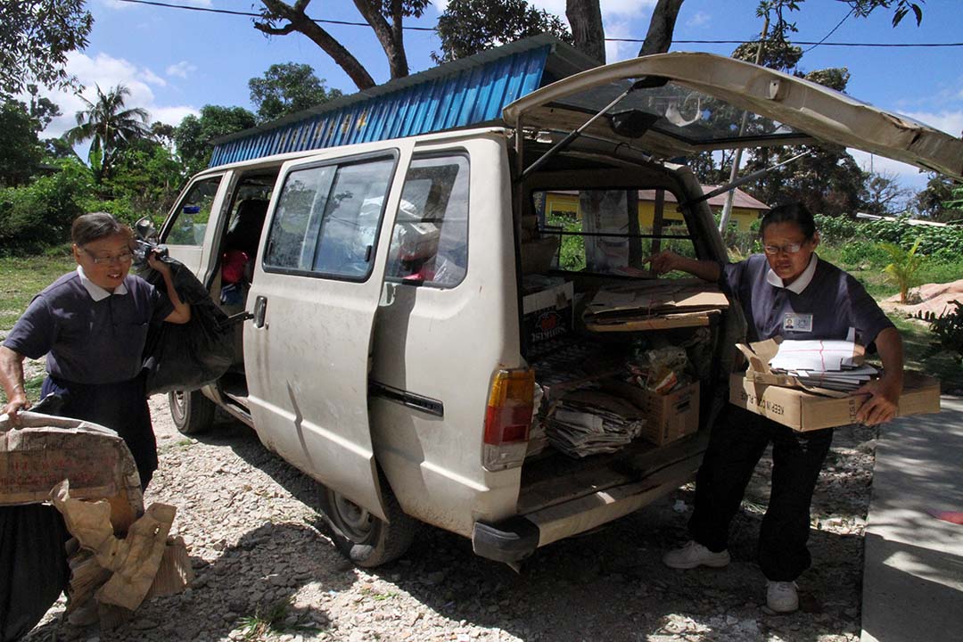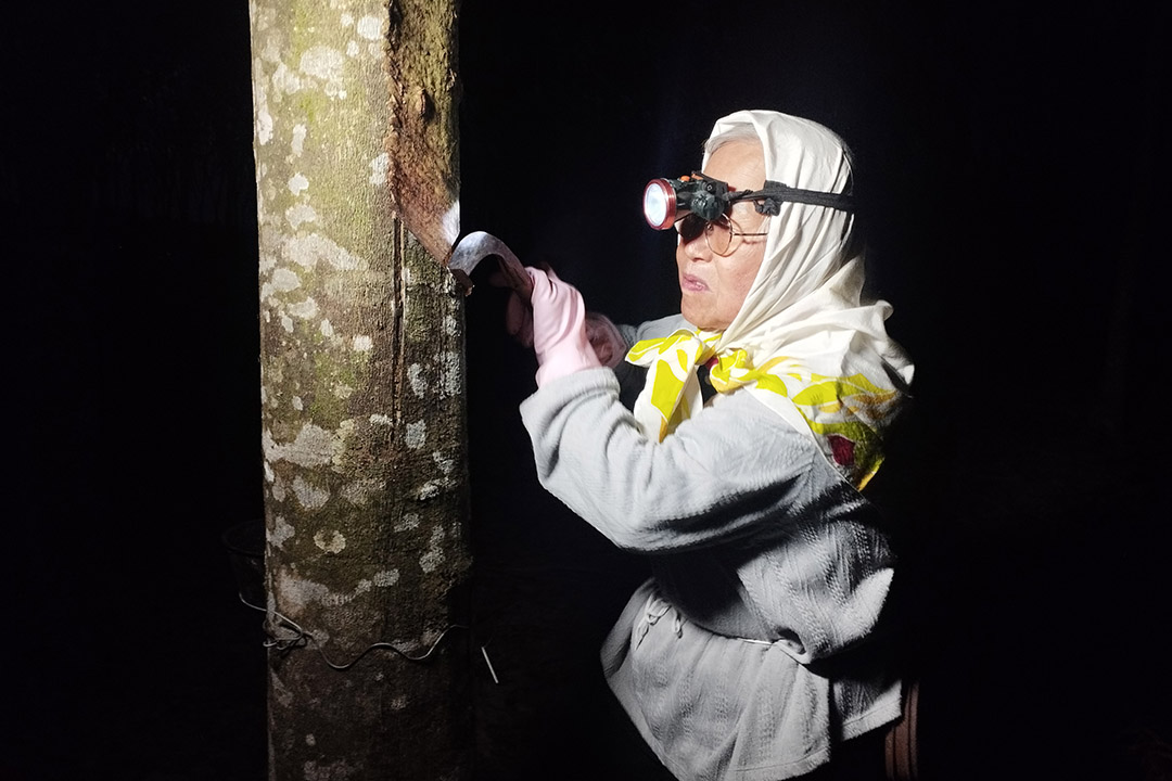 从事割胶的她,为了赶得及社区环保日,与志工一起做环保,她清晨五点摸黑独自骑着摩托车去橡胶园割胶,独自一个人在偌大的胶园里,只靠头上微小的头灯照亮前方的路,耳边偶尔传来动物的声响。当时一心一意只为了能七点多赶回去做环保分类,她全然无惧。