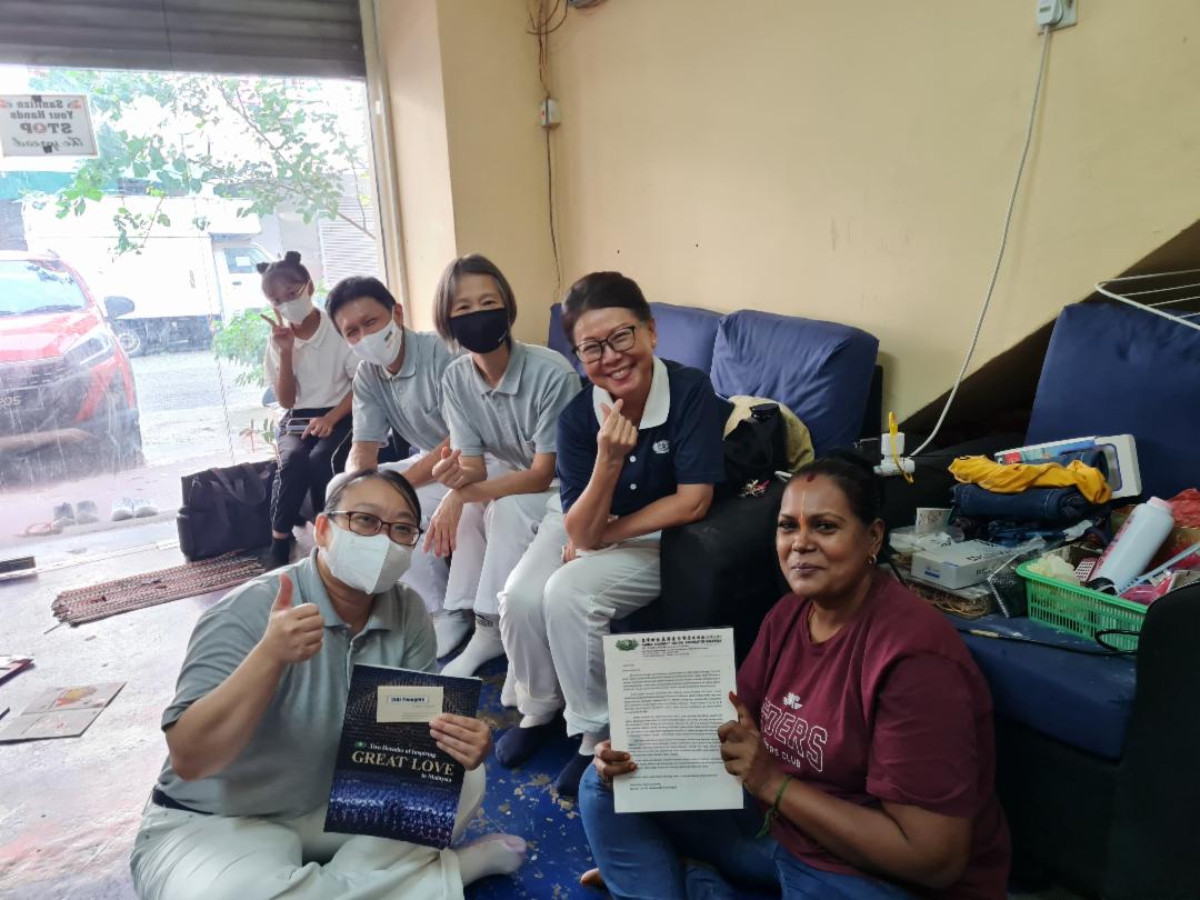 而玉萍和团队在协助凤仪纾困的当儿,也扮演解忧的角色。凤仪分享,当初对慈济的确懵懵懂懂,但看到玉萍如斯落力为自己安排活动岗位,被她的诚与情所感动,尽心尽力投入活动。 “疫情稍缓后,我带着两个儿女去环保点做资源分类、承担社区义卖活动的工作人员、到慈济鸿图园共修处和吉隆坡慈济静思堂打扫。”
