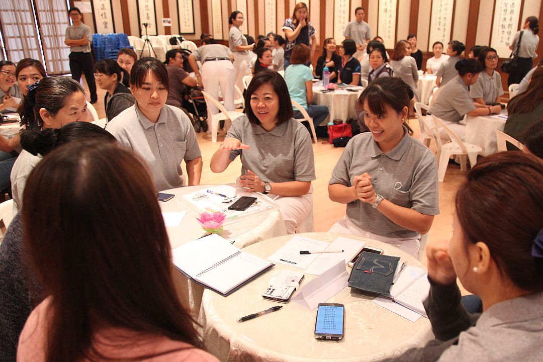 2019年黄淑芬家里多了一位新成员,需要协助照顾孙子,但她却从未缺席所有的活动,依然勤奋地上课学习,仍旧热情地进入校园带动小朋友,因为她知道唯有身处在正能量与爱的地方,才能永保自己的正念。