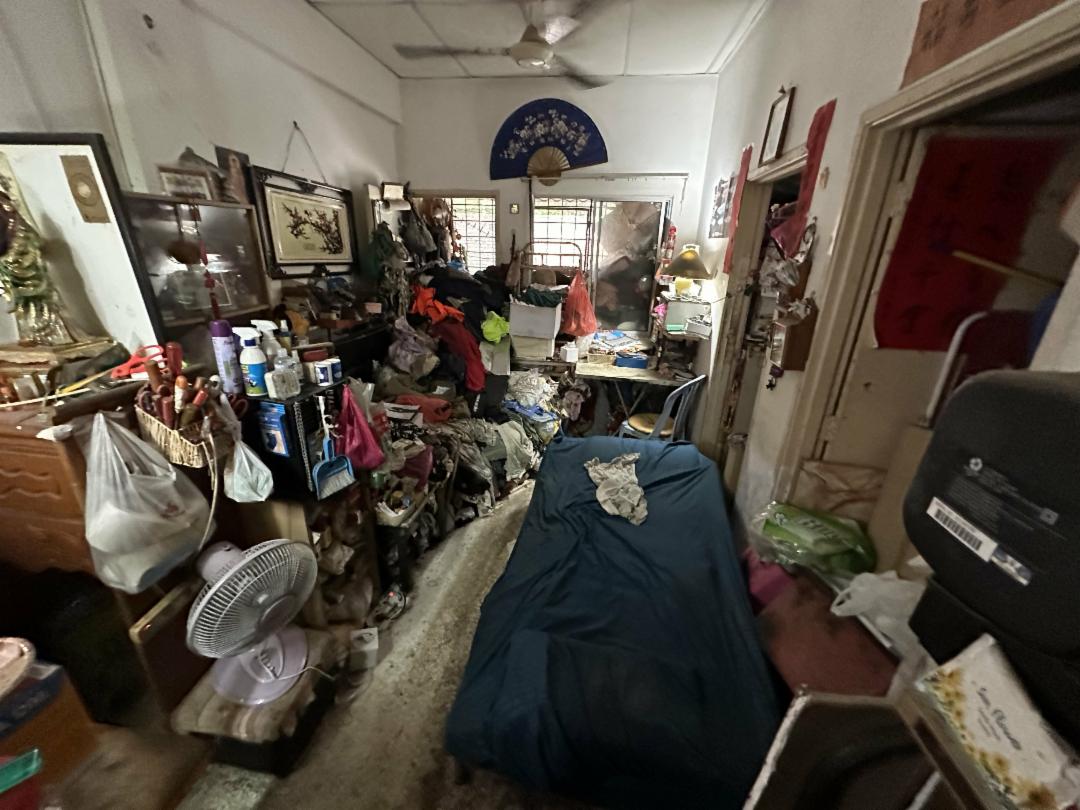 七、八年前,彭阿公的房客因患上老人痴呆症,彭阿公没能力照顾他,遂送他回家,让对方的子女照顾。自房客不在后,面对众多杂物,彭阿公觉得心烦,便将所有物品塞进房间,塞满一间又一间,连自己睡觉的房间和客厅也塞满了,他只得将一张床具拖出来,放置在房门外的柱子旁。每天晚上就躺在铺着脏乱床单的床上,在四周都是杂物堆里睡觉。