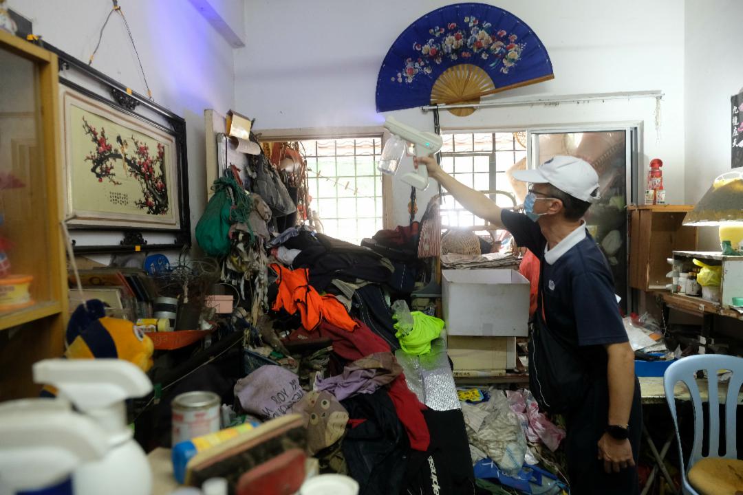 陈泛全难忘2021年4月底,当他接到雪隆分会的消息,说有位独居老者彭阿公的家需要清扫时,他遂与志工前来彭阿公家勘察。当时,彭阿公打开大门,门背后堆着杂物,无法全打开,只能半侧身体进去。