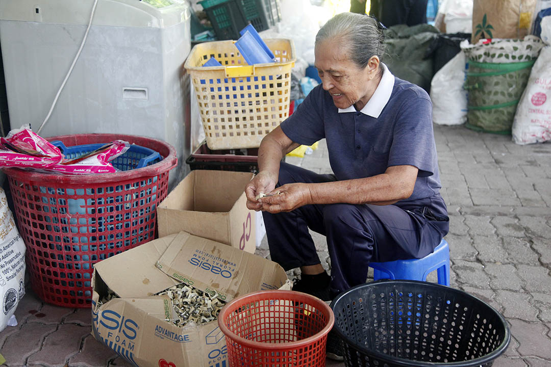 今年八十岁的慈济志工曾敬媚(虑莲)笑着说:“我以前说老了什么都不做,要好好休息。结果现在,我宁愿出门做环保,哪怕只是捡一个瓶子,我都觉得这是有价值的事。”
