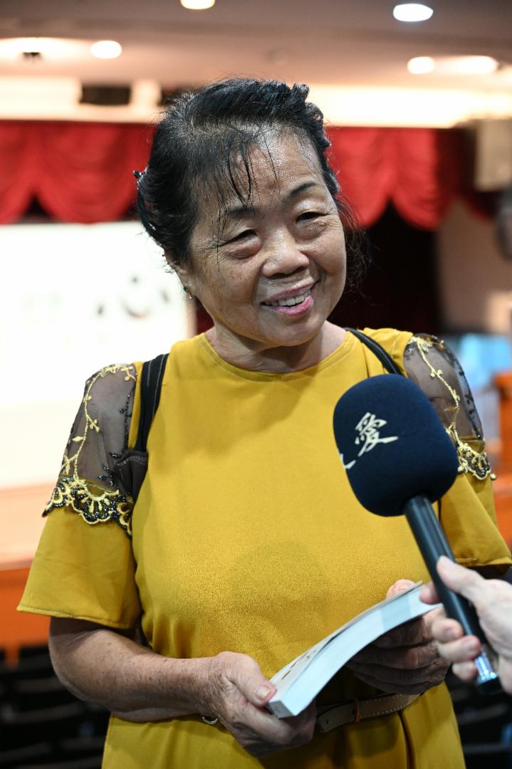 卢素霞女士是家庭主妇,喜欢参与各种心灵讲座,表示获益良多。当她拿到新书入座后即专心阅读,并融入书中的慧言精句中,甚感欢喜。