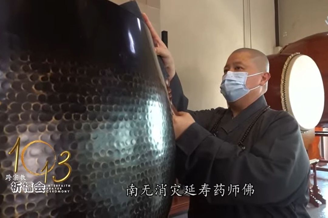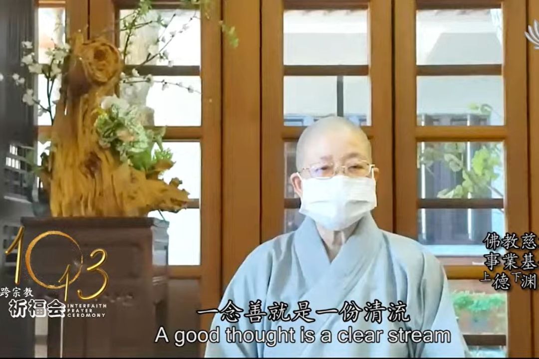 法师感谢慈济证严上人的推动,结合不同力量来成就一人一善跨越宗教、种族的祈祷,大家心连心、发挥无限的力量,一起为十方世界祈求,疫情赶快平息。