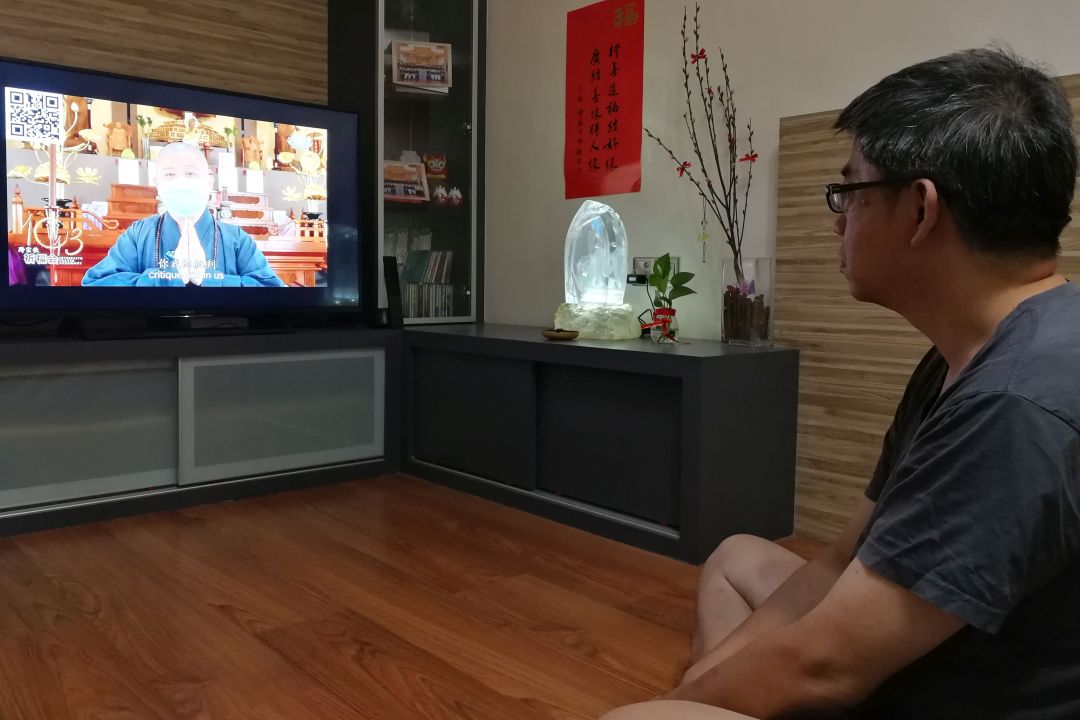当时同为慈济志工的太太黄爱芳(慈侒)不断陪伴及开导,更邀他一起参与七月吉祥线上《地藏经》恭诵,他的心境逐渐放松好转。当晚陈松基再次透过祈福会,感受到疫情下宗教力量的重要,也唯有人人戒慎虔诚,才能面对各种生活挑战。