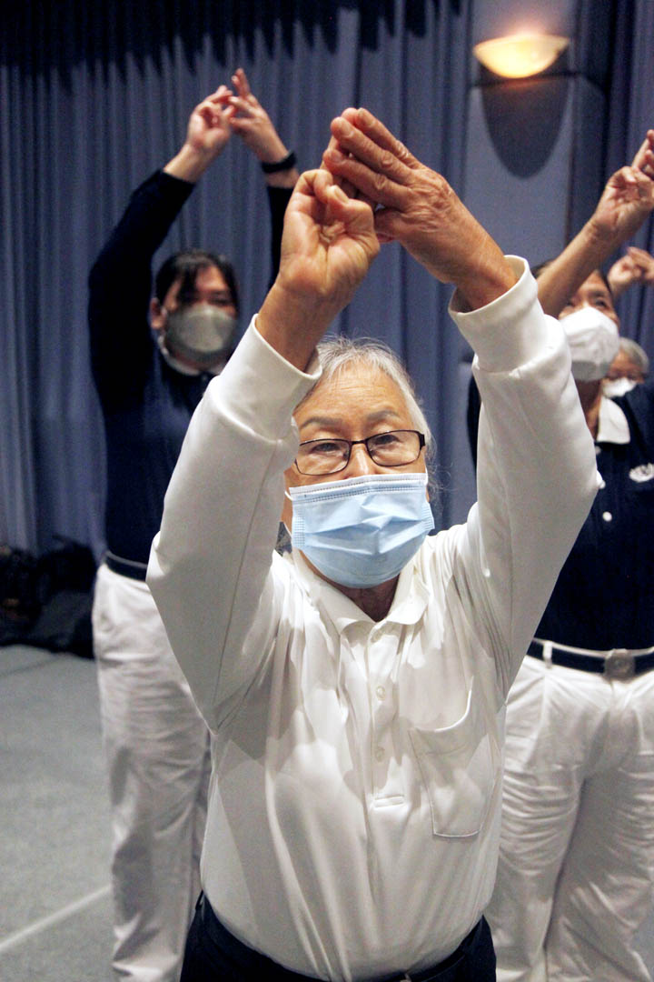社区志工安排每星期载送演练,让她无后顾之忧,又因手痛无法举高也无法向后伸展,手语动作无法与团队整齐划一,烦恼之时罗婉棱出现,每星期接送她一同前来针灸治疗。她感恩地说:“之前我连上车扣安全带都无法做到,因为手很痛,无法伸到后面。几次针灸后,筋络松弛许多,动作逐渐跟上团队,感恩大家成就!”