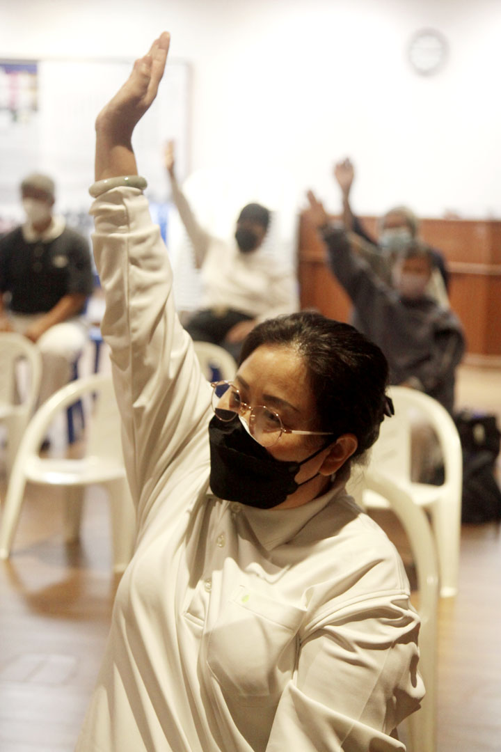 4月演练至今,当与大家一起坐着反覆唱诵与演练动作,有时她却突然直冒冷汗,手、脚、背部、头部极度不适,整个人非常虚弱。她说:“有好多次我觉得自己要走了。一点力气都没有,想要站起来都不能。今年起,这种‘痛’不时就会来,更不知‘痛’会来多久,去看医生,检查再检查,也找不出原因。”