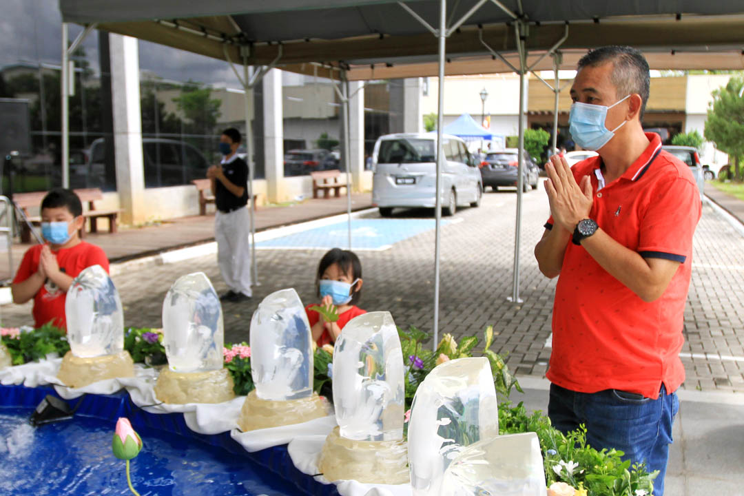 林捷丰感慨地表示,已参与慈济浴佛五年以上,年年带着孩子来亲近佛陀和佛法,借此启发孩子的善心善行。未曾想过,疫情会打乱人类的生活作息,病毒影响全世界,孩子虽然记忆模糊,但是我相信每一次来浴佛,在这善的环境中,听着志工们的分享,那分善念已埋藏在心里,有天一定会发芽。