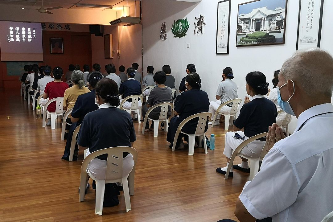 目前全球已有超过二千九百万人受新冠病毒疫情感染,并夺走了逾九十万条宝贵的生命,所以各国政府莫不采取严峻的措施进行抗疫行动。慈济居銮联络处遵守政府制定的宗教场所活动指南,平时能容纳一百五十位民众诵经的会所被剧减至只能接待六十人。因此首次采用网上预先报名的方式,进行今年度三梯次的连线诵《地藏经》活动。众人在抵达会所后,皆须依规定进行登记、测量体温及配戴口罩。主持人也在每场次嘱咐众人除了要随时保持社交距离,也请在活动结束后即离开会所。