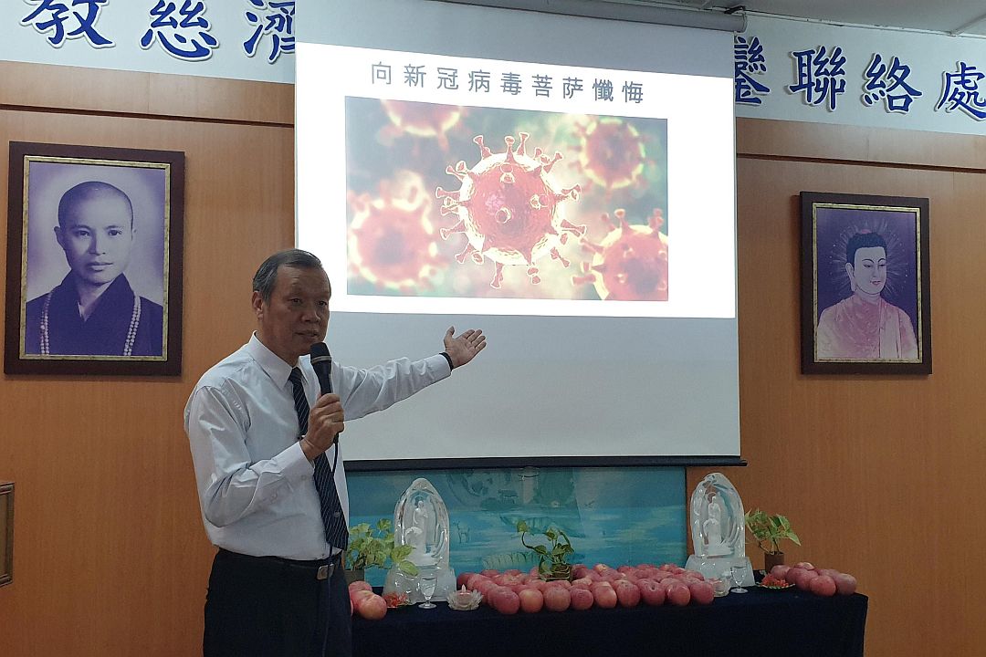 “新冠病毒是上天给今年世界地球日五十周年庆的生日礼物。”志工王成耀(济掀)以说故事的方式启示众人,应认真反省为何新冠病毒会从动物感染到人类,并接着扩散肆虐世界各地。